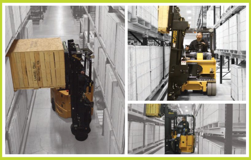 - Operación fluida en pasillos de tan solo 54 pulgadas libres entre cargas.